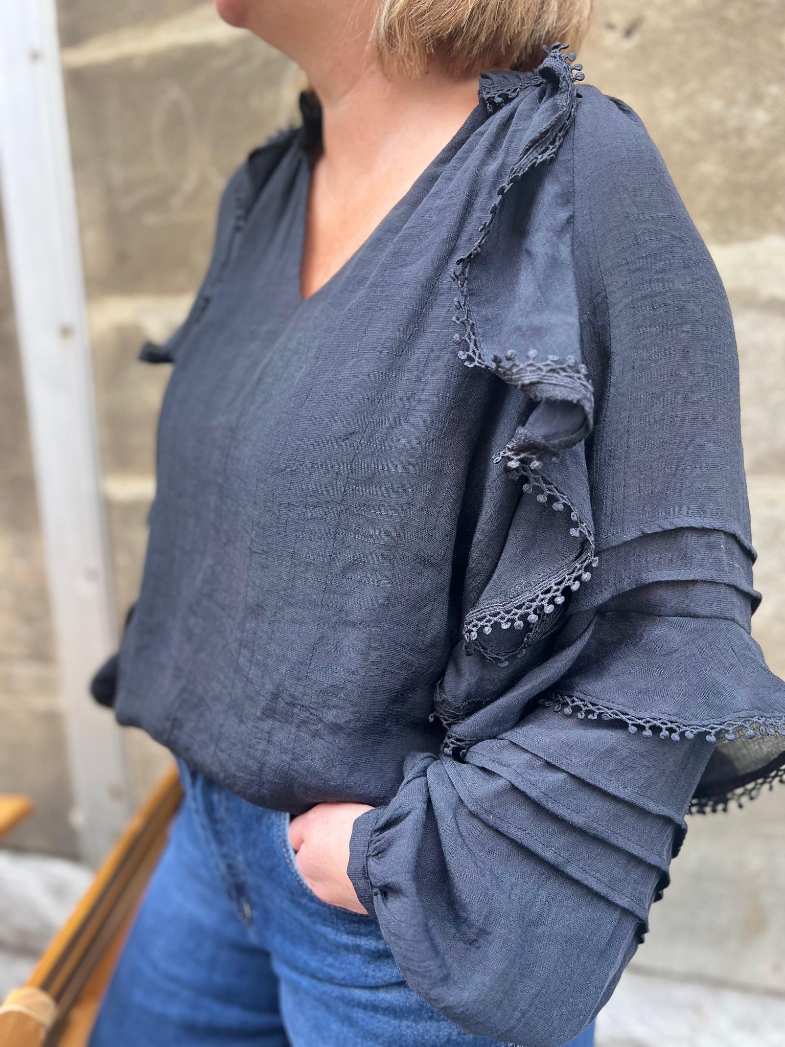 Blouse froufrou noir