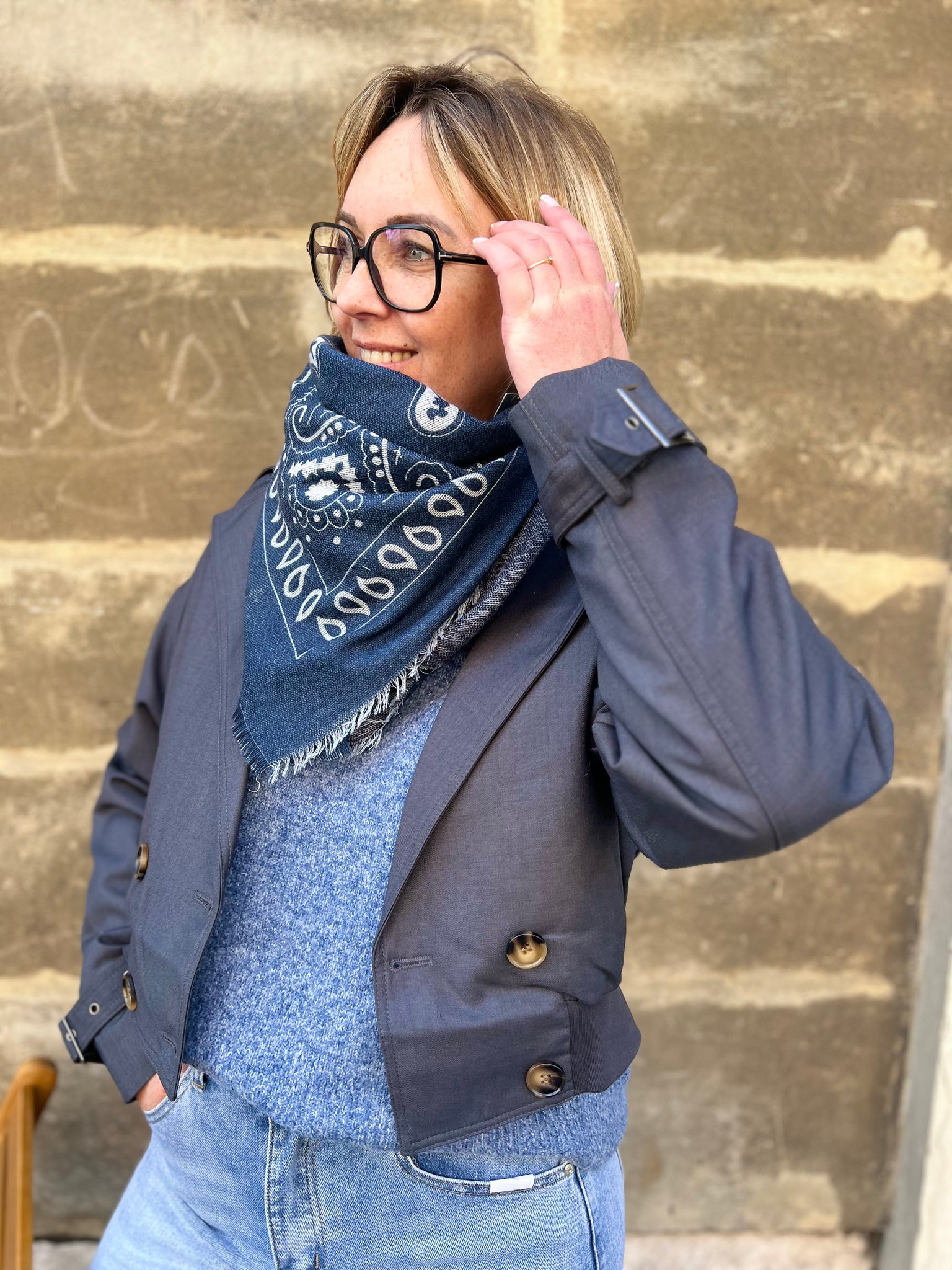 Veste courte, détails boutons sur les épaules, la coupe est dingue, elle est idéale à porter seule les jours de beau temps ou en mode veste/gilet sous un manteau.