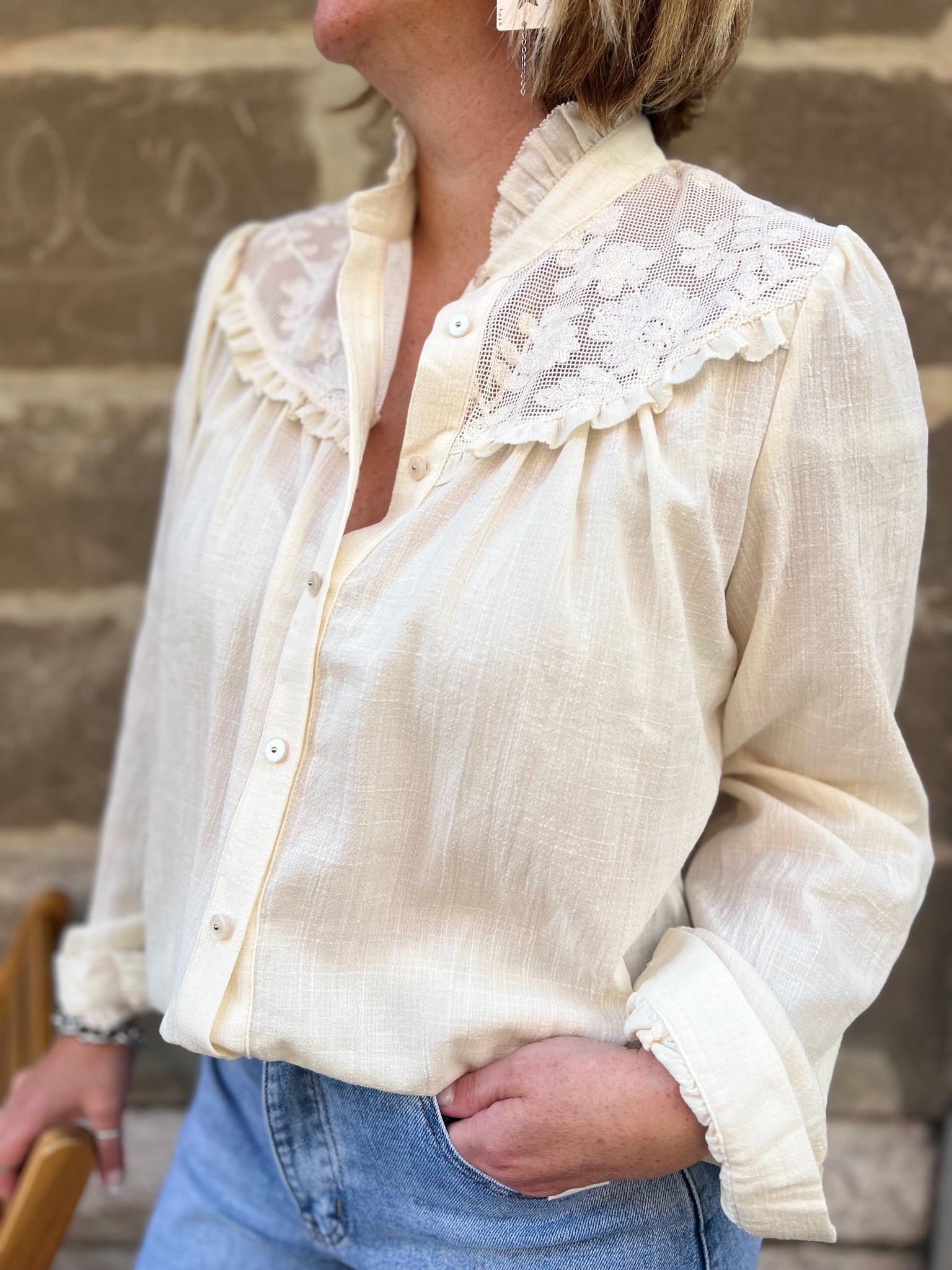 Blouse col volante et détails brodés, ultra féminine, on adore !